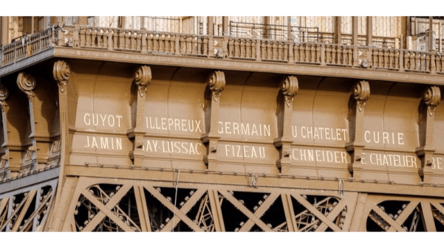 En 1889, Gustave Eiffel avait fait graver en lettres d’or de 60 cm le nom de 72 savants français — parmi eux Arago, Ampère, Laplace, Daguerre, Lavoisier… Mais aucune femme, bien que des pionnières comme Sophie Germain soient déjà reconnues.