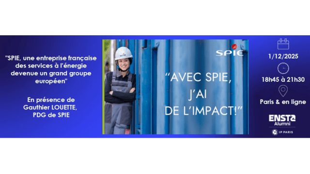 ENSTA Alumni organise une conférence grand témoin avec Gauthier Louette, PDG de SPIE, sur le thème "SPIE, une entreprise française des services à l'énergie devenue un grand groupe européen". Elle aura lieu lundi 1er décembre, à partir de 18h45, en présentiel à l'Espace Saint-Martin à Paris, et en visioconférence. Un cocktail suivra.