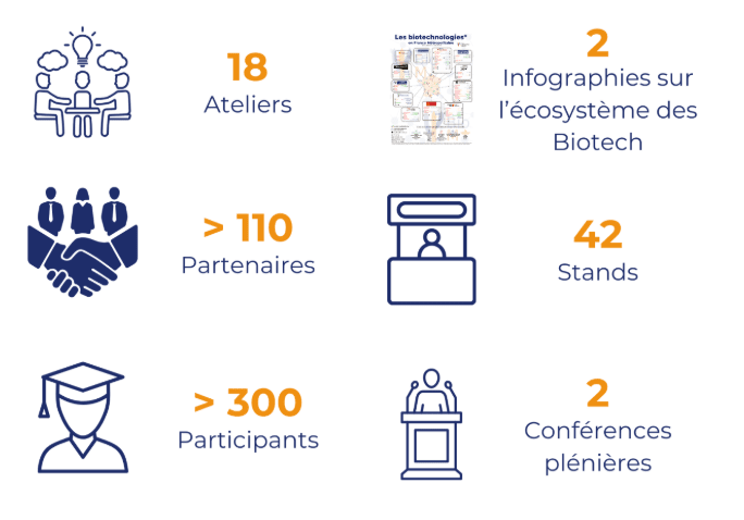 Rejoignez-nous pour une journée dynamique et inspirante , avec des séances plénières, des ateliers interactifs et des tables rondes captivantes ! C'est une occasion unique d'échanger avec de jeunes scientifiques, des leaders de l'industrie et des acteurs clés de l'écosystème des sciences de la vie.
