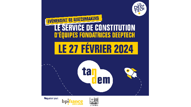 Participez à la prochaine soirée de matchmaking Tandem en ligne organisée par Bpifrance en partenariat avec Find Your Cofounder !Si vous souhaitez ent...